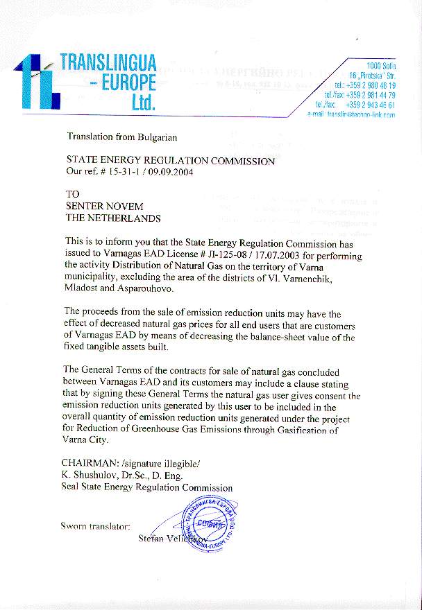 Reduction of greenhouse gases by gasification of the municipal district heating providing to end-users on the territory of Varna municipality.